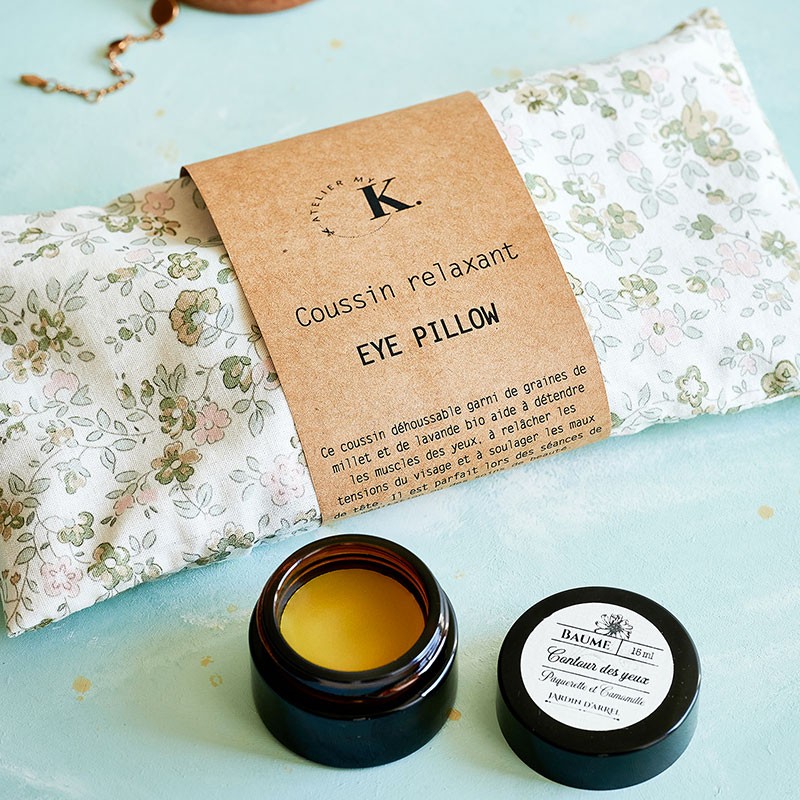 Le Eye Pillow et le baume contour des yeux sont fabriqués de façon artisanale en Limousin et composés de produits 100% naturels et français.